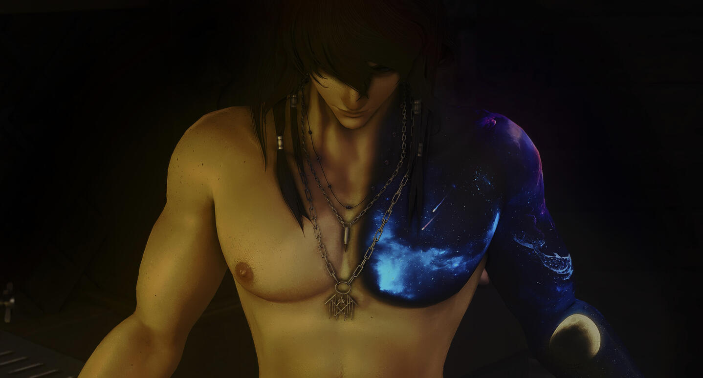 On his right arm is a black sleeve tattoo that creeps upwards onto his chest, and its design is a specific part of the cosmos that he "fancies the most."Personality